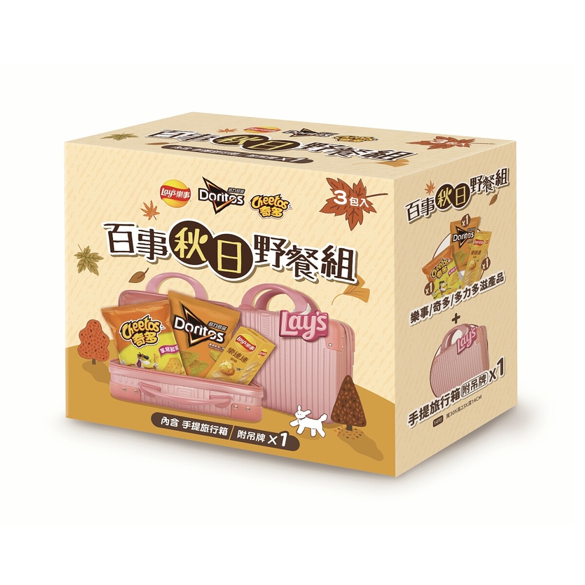 微涼的秋季最適合野餐啦!momo獨家限量販售的「Lay’s 樂事」秋日野餐旅行組,加碼推出非常精緻的14吋手提行李箱與造型吊牌,打開後裡面還有多力多滋、奇多、樂事等驚喜,不只好吃還很好拍。
