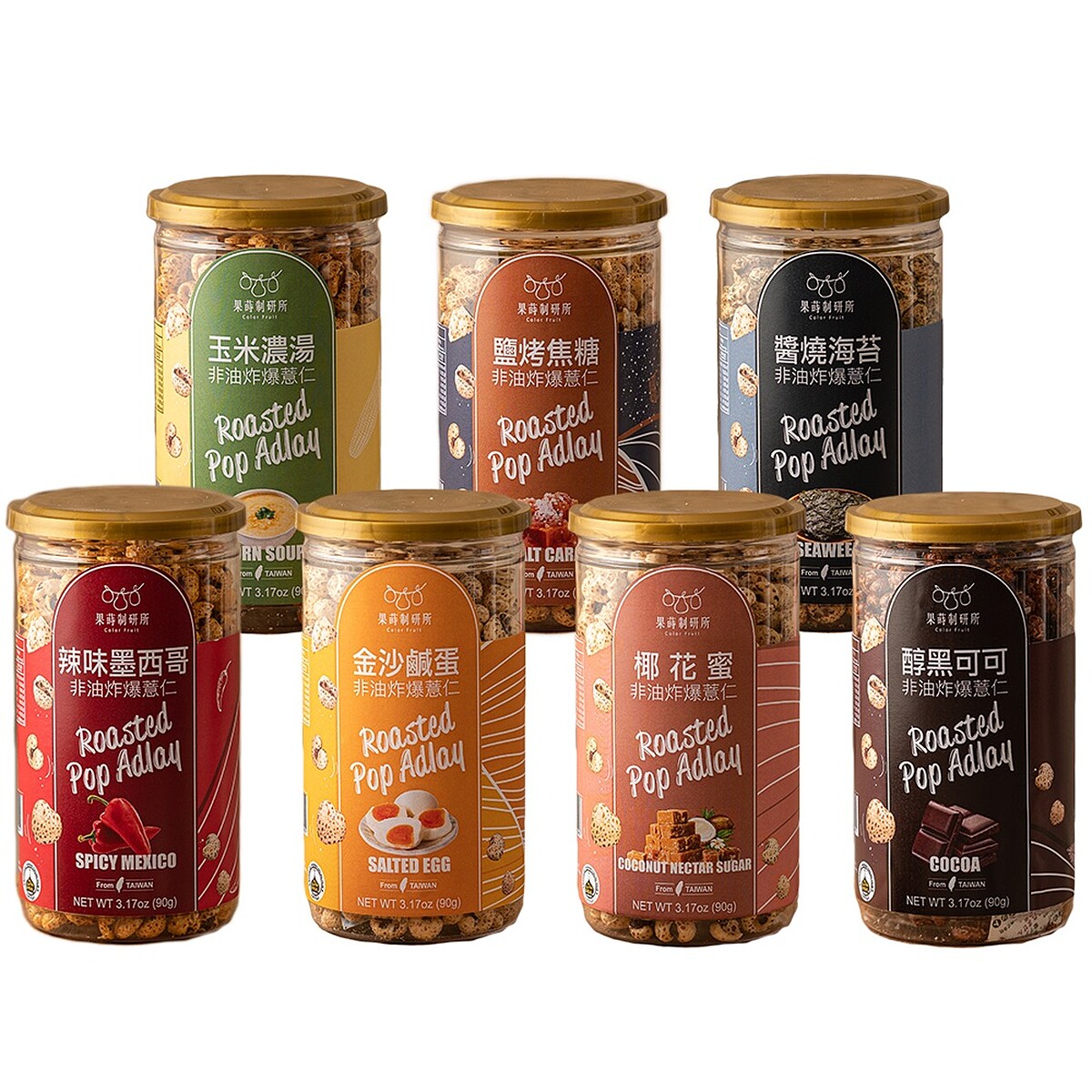 嚴選台灣在地紅薏仁純手工製成,採低溫烘烤、高壓熟成,無添加防腐劑、色素、人工糖精等。口感完勝爆米花,入口感受穀物散發的香氣,推薦大家可以試試椰花蜜、金沙鹹蛋及辣味墨西哥口味,鹹香微甜不油膩,完全是低熱量美味點心阿!