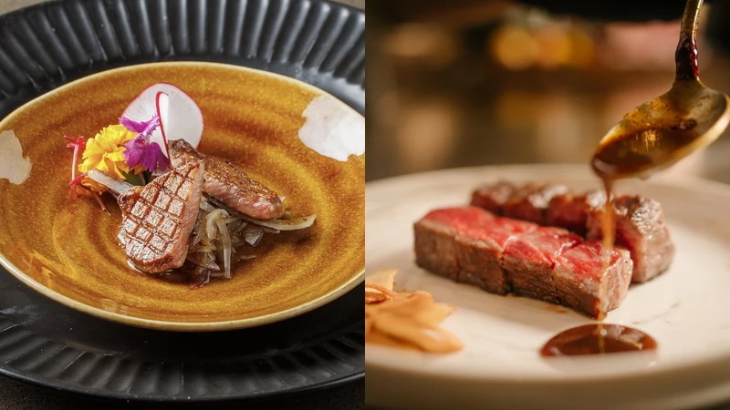 其中「Black Opal 厚切和牛牛舌」增加了厚度,外酥內嫩的口感打開味蕾,還有首創使用法餐特殊砧板及畫刀處理的「極上日本和牛肋眼A5」,A5和牛油花的軟嫩滋味,絕對是肉控難以抗拒的全新呈現。
