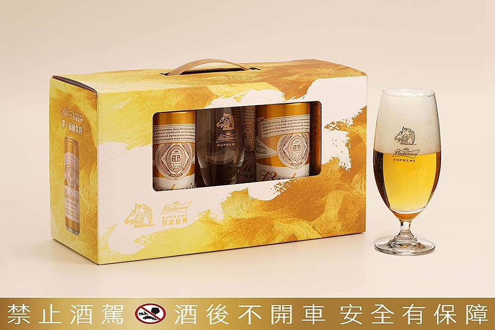 內含:百威金尊330mL罐裝8入、百威金尊金馬聯名玻璃杯一只