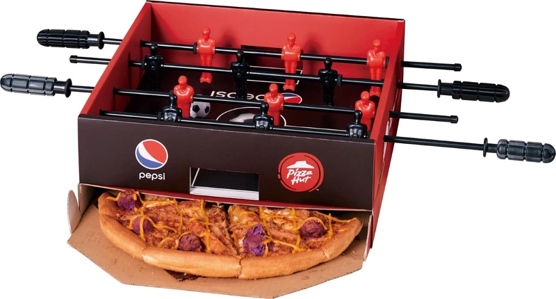 此外,必勝客這次將比薩包裝盒改造成手足球遊戲盒,採純手工製作,數量有限、只送不賣,極具珍藏價值,即日起,凡購買「雙濃起司炸魚番薯比薩」,就有機會免費獲得限量手足球遊戲盒。