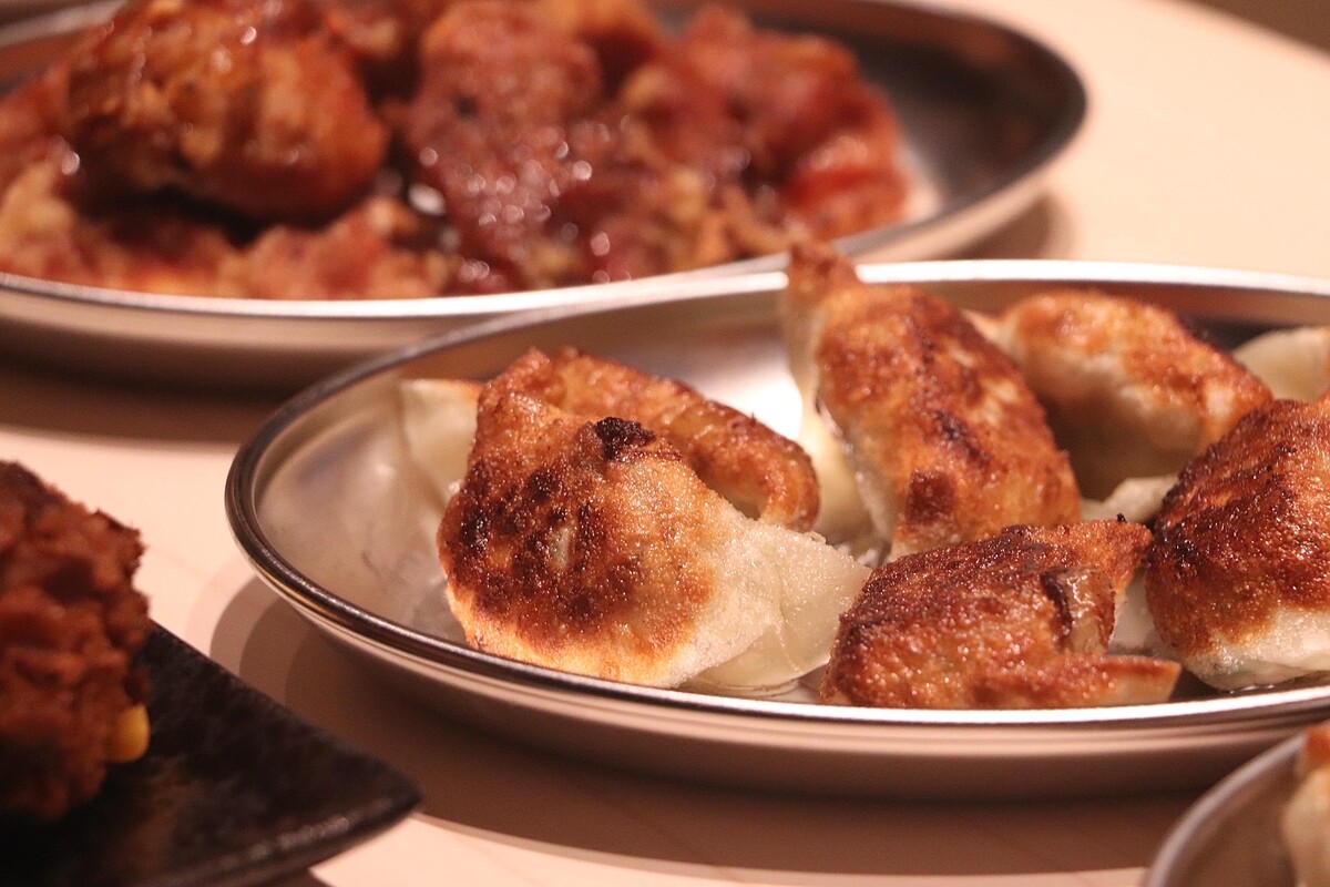 本店最大特色當然就是煎餃本身,靈感發想自日本人氣煎餃燒,金黃色的餃皮外觀有別於一般常見的冰花煎餃,運用高溫半油炸方式,使餃皮同時擁有一半酥脆與一半柔軟口感,內餡則使用高麗菜與韭菜,一口煎餃一口啤酒實在享受。