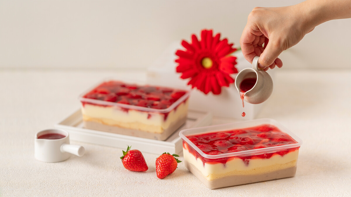 而超人氣的「芋光寶盒」也搖身一變變成了草莓芋泥盒,以黃金牛奶蛋糕為基底,層層堆疊上扎實的芋泥與濃郁卡士達,再將草莓滿版排列,最後淋上手工鮮莓果醬,讓你每一口都是幸福滋味!