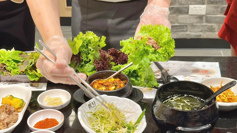 以新鮮生菜包裹著肉一起品嚐,是韓國傳統飲食文化之一,其實是象徵著包著財富帶來好運的意象。