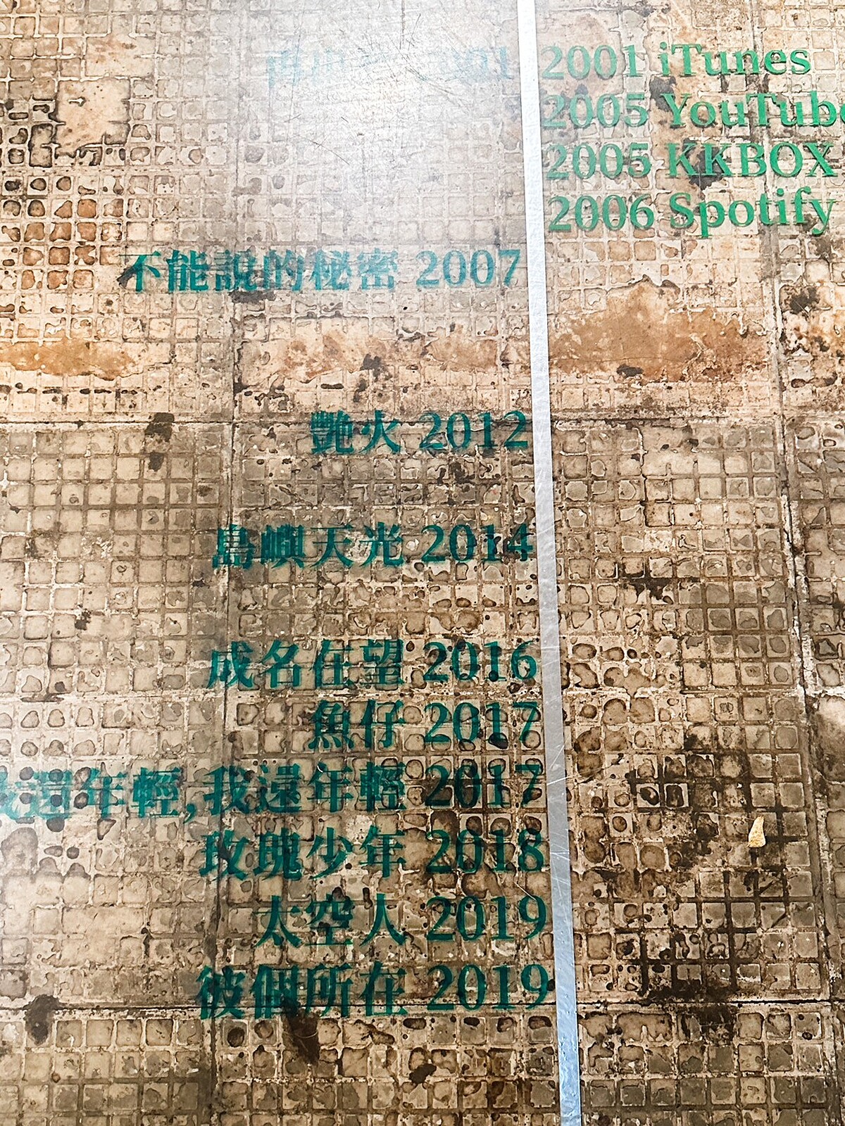而入口處的弧度設計讓人彷彿走進音樂隧道中,而一進門的地板上還有一條時間軸,左邊記錄了每個年代具有代表性的歌曲,而右邊記錄著音樂載體,從卡帶、CD、mp3到現在的音樂串流平台,看著音樂雖然隨著科技與流行文化的轉變,但仍是每個世代生活中不可或缺的一部分!