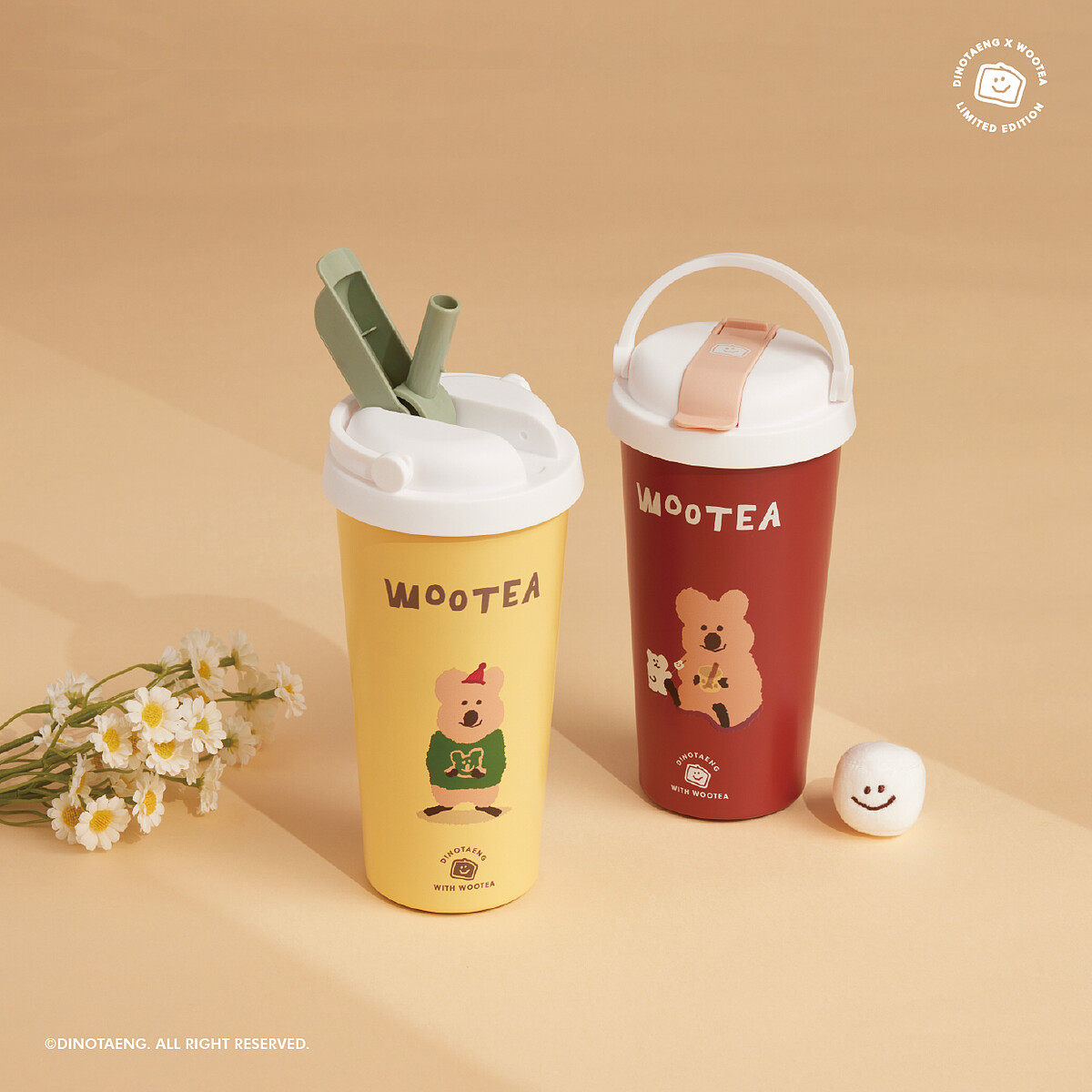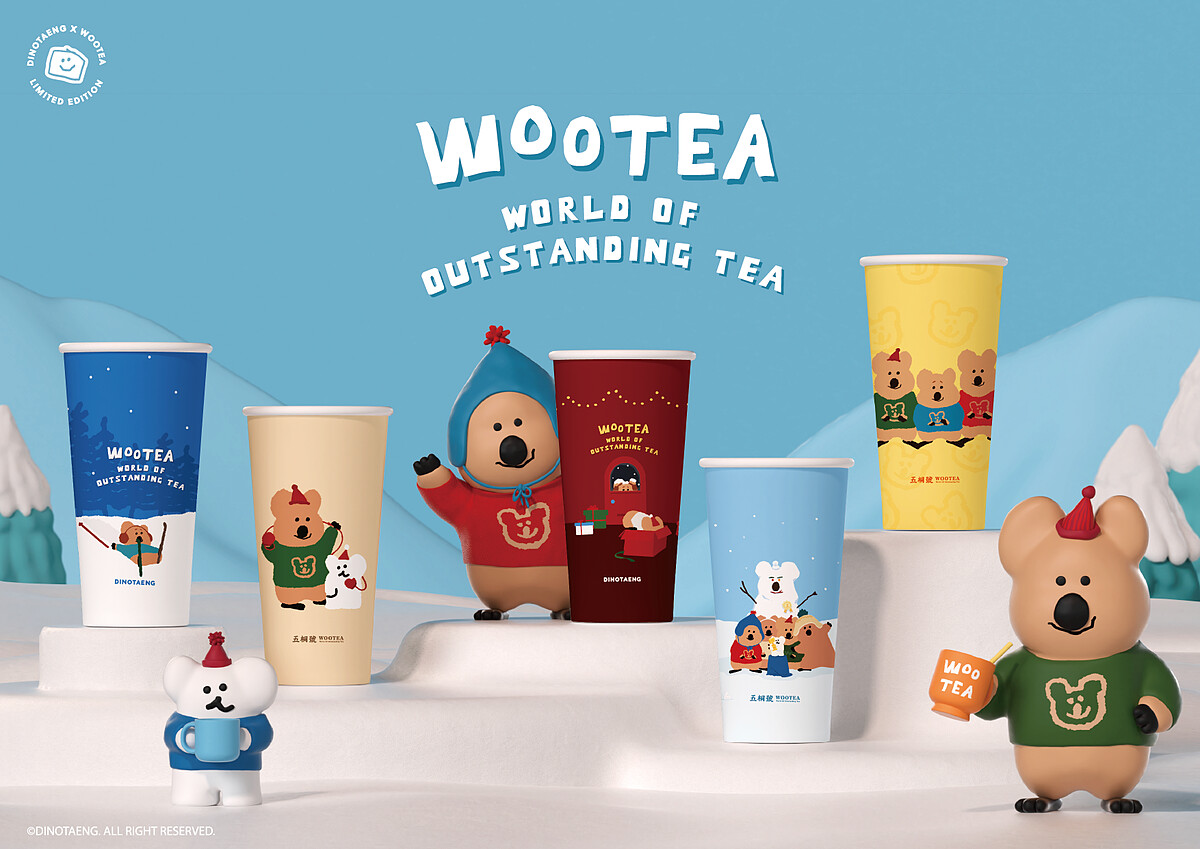 而「Dinotaeng」軟萌主角短尾矮袋鼠Quokka將與Bobo、Marsh一起現身五桐號!除了加購周邊外,將一口氣換上5款聯名飲料杯及飲料封膜,療癒又呆萌的模樣,萌度指數爆表!