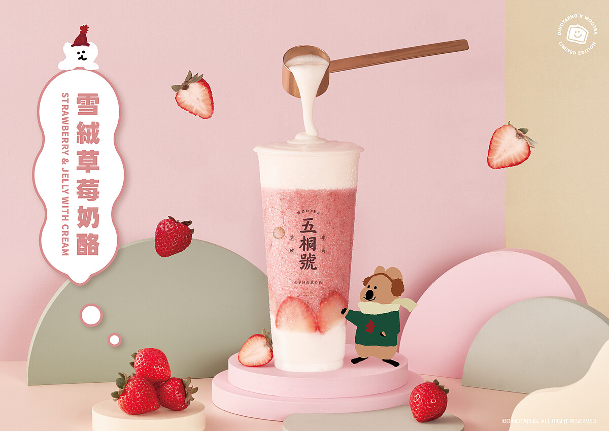 除了爆炸可愛的DinoTaeng聯名周邊外,迎接草莓季到來,讓草莓控狂敲碗的雪絨草莓奶酪終於又能喝到啦!