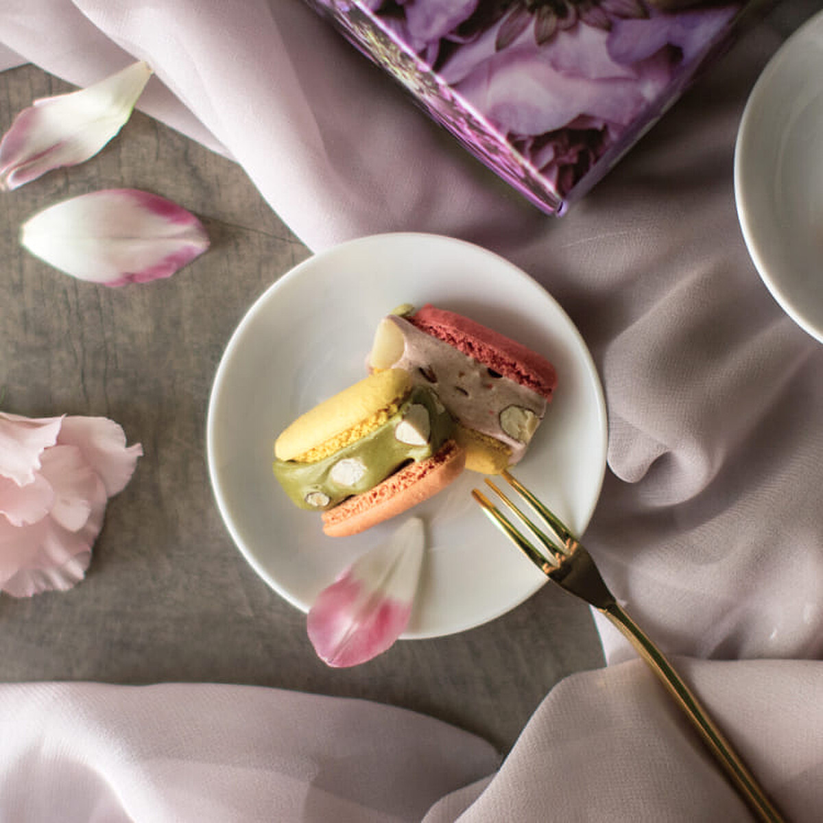 小茶栽堂獨創「馬卡龍牛軋糖」結合法式馬卡龍與法國傳統牛軋糖,將「Nougat」手工製作,嚴選法國進口奶油及杏仁粉,專業手感反覆壓摺,加入研磨茶粉與豐富堅果,口口令人驚喜!