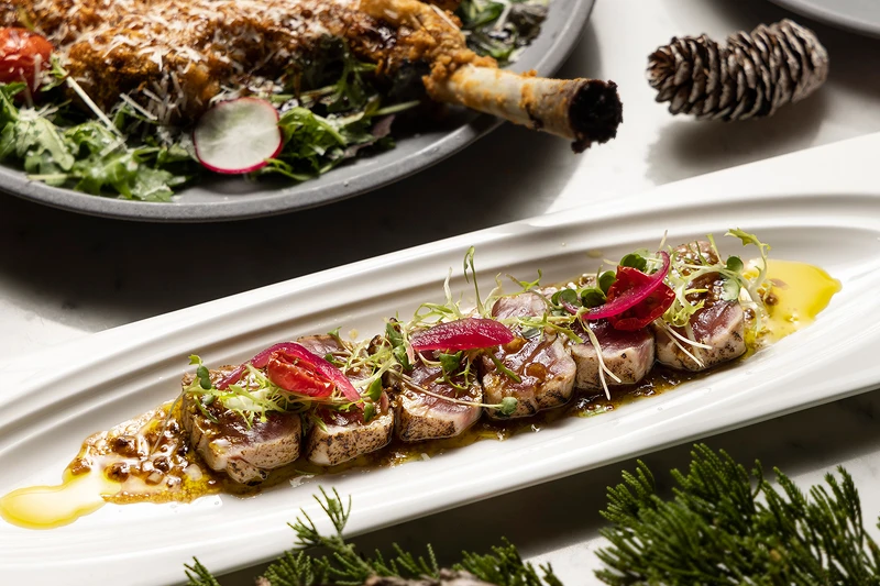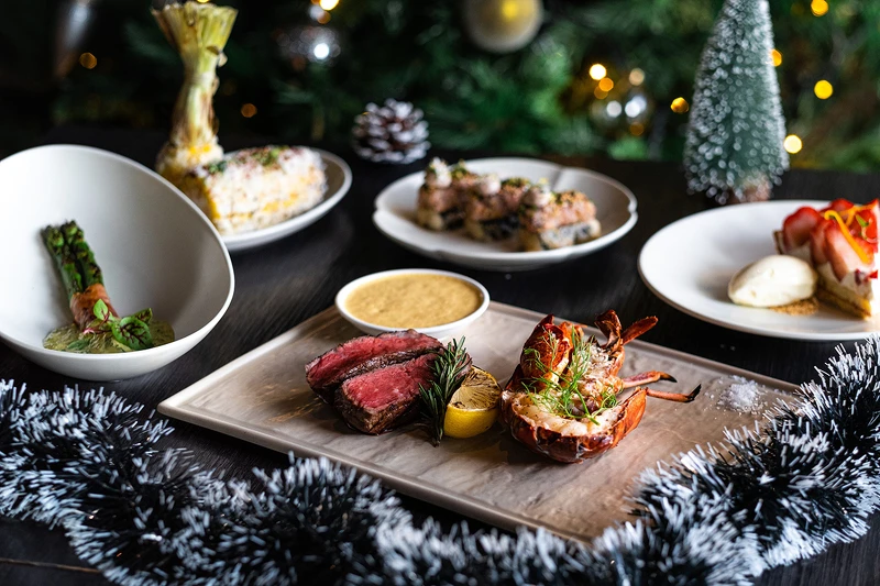 位於信義商圈新光三越A9的原木燒烤牛排海鮮餐廳 WILDWOOD,為迎接即將到來的聖誕節慶,將於12月23至25日及12月31日推出豐富精彩的歲末饗宴,由米其林星級主廚林明健Kin與駐店主廚吳思緯共同規劃菜色。推薦主菜有「海陸雙重奏—美國頂級肋眼菲力6oz搭配半隻波士頓龍蝦」,主廚運用兩種不同燒烤手法來料理肋眼菲力與龍蝦,原木大火燒烤牛排鎖住肉汁,過程得反覆加熱、靜置,呈現外焦內嫩的完美三分熟度;龍蝦則要以龍眼木的炭火炙烤,利用高溫與蝦殼接觸,除了產生了迷人的香氣並透過主廚悉心觀察火侯後帶出肉質細膩的海味,搭配上十分具有在地風格是拉差金桔醬,酸香解膩也增添了一股清新的風味,吃來更具層次。
