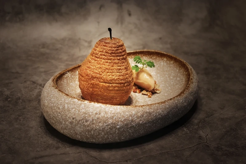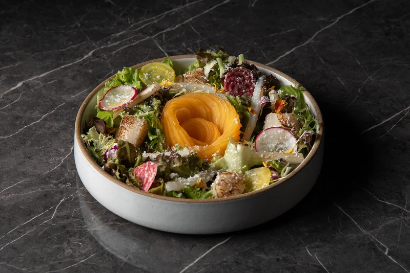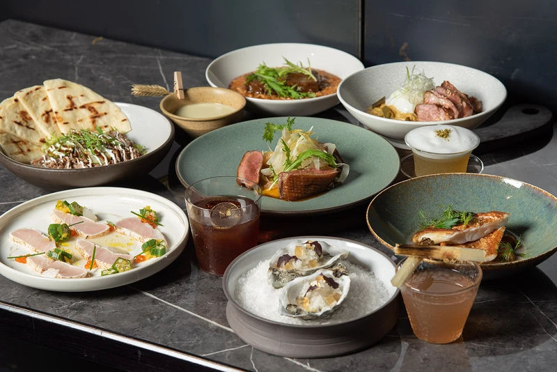 瑪黑餐酒推出冬季新菜,主廚 Calvin Kao(高榮謙)以經典菜色為基礎,並加入多種菜系融入其中,呈現繽紛豐富的滋味,具體展現瑪黑餐酒以巴黎瑪黑區交融各國文化特色的靈感來源;像是使用「烤」的手法,增添煙燻、碳燒氣息傳遞溫暖的意象,「炭烤伊比利豬味噌奶油拌麵」的炙烤香氣與「熟成鴨胸」焦脆口感讓人胃口大開;調味則透過「醃漬」和「發酵」的風味元素,使用P&T柏林選茶中的佛手柑伯爵茶自製康普茶、白蘿蔔油醋醬汁等,成為菜色中最具亮點的滋味,增添清新的味覺體驗,尤以「炙燒干貝軟絲沙拉」「印度烤餅」最具此特色。