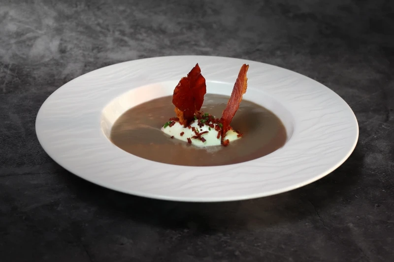 另有「董事長私房|殿堂級隱藏版套餐」同時登場,主廚將以法餐為本,結合台灣風土食材,以及有機健康的烹調概念呈現,主打開胃湯品「焦糖洋蔥清湯|鍋牛餃|茴香」將巧妙運用雲林黑蒜與茴香增添風味,「屏東乳鴿|栗子|牛肝蕈|培根醬汁」則以120小時熟成方式軟化肉質,與經典的栗子、牛肝蕈與培根搭配,呈現中西融合的絕妙滋味。每人NT8,000元+10%。