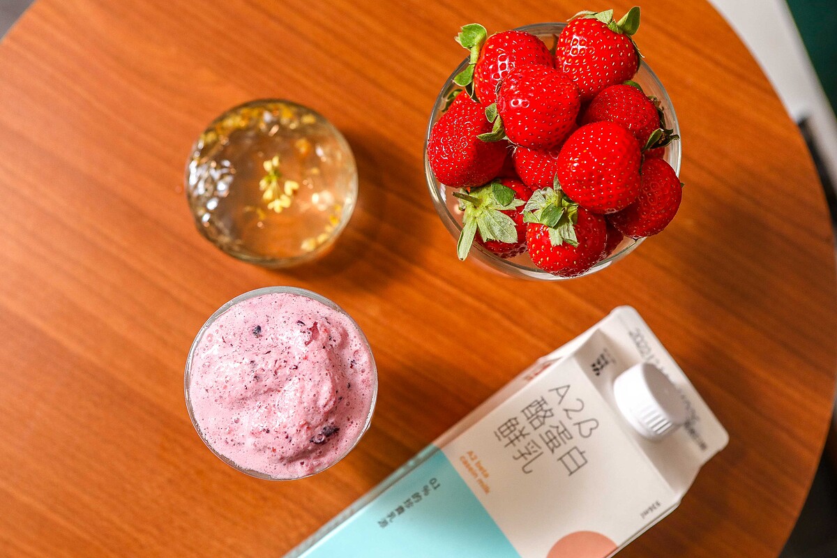 而「莓桂雪沙」則是使用綜合莓果與帶有清香的碧玉茉莉茶湯做基底,加入A2β酪蛋白鮮奶,底部的桂花凍也是經過長時間手工熬煮而成,帶入桂花的淡淡清香與滑順口感,增加整體的層次。