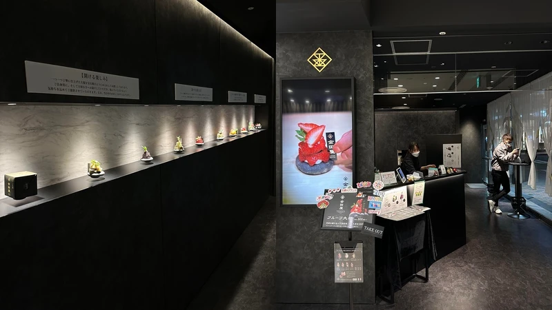 如果是大福狂熱者,銀座這間「フルーツ大福金田屋」可得走一趟,黑色調的店裝,浮誇系的水果大福外觀,在店內還有旋轉式轉盤華麗呈現。與傳統用麻糬包裹水果不同,他們家將大福壓平,將水果用裝飾感包裝,除了草莓口味之外,目前季節限定還有紫芋(到1/31),以及聖誕限定款口味(到12/26),在店內用的話會附上一杯熱茶,一個約1000日幣左右。
