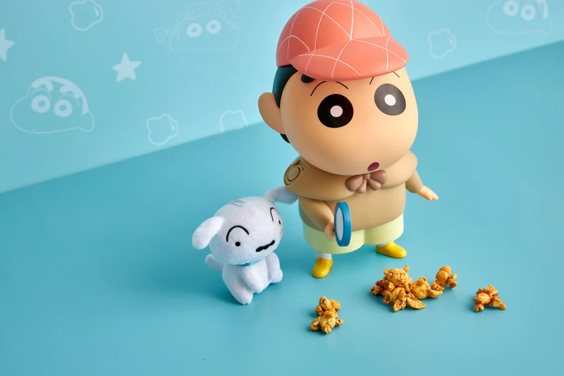 偵探小新爆米花桶重現《蠟筆小新》動畫中的經典的偵探造型,採可開式帽蓋設計, 而隨桶內含卡滋爆米花的招牌人氣口味「美式焦糖牛奶風味爆米花」乙包,還附上了隨身背帶,還可依身型自由調整背帶長度,以緞面材質搭配湛藍色系超吸睛。