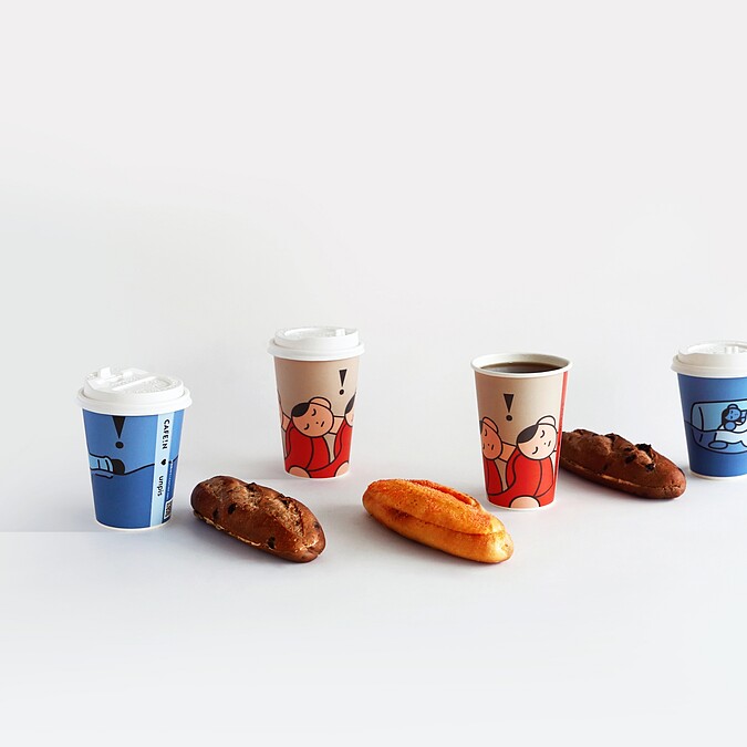 在迎接2023年之際,CAFE!N特別和「unpis」攜手合作,以三幅unpis原創作品《抱抱男》、《階梯鬧劇》、《瓶中沉思女孩》詮釋,打造超限量特色包裝,咖啡杯與吐司盒都印有原創視覺圖案,實在超可愛。
