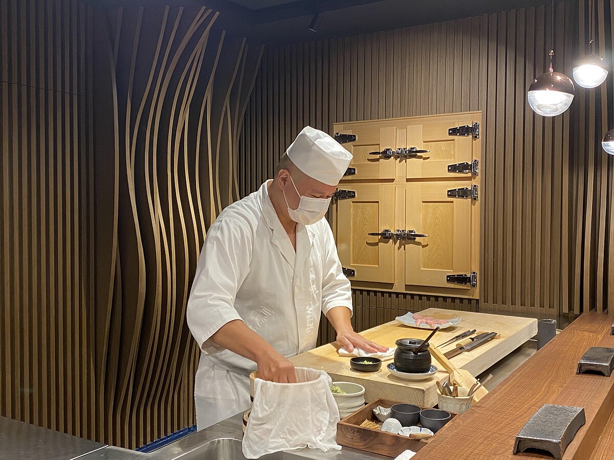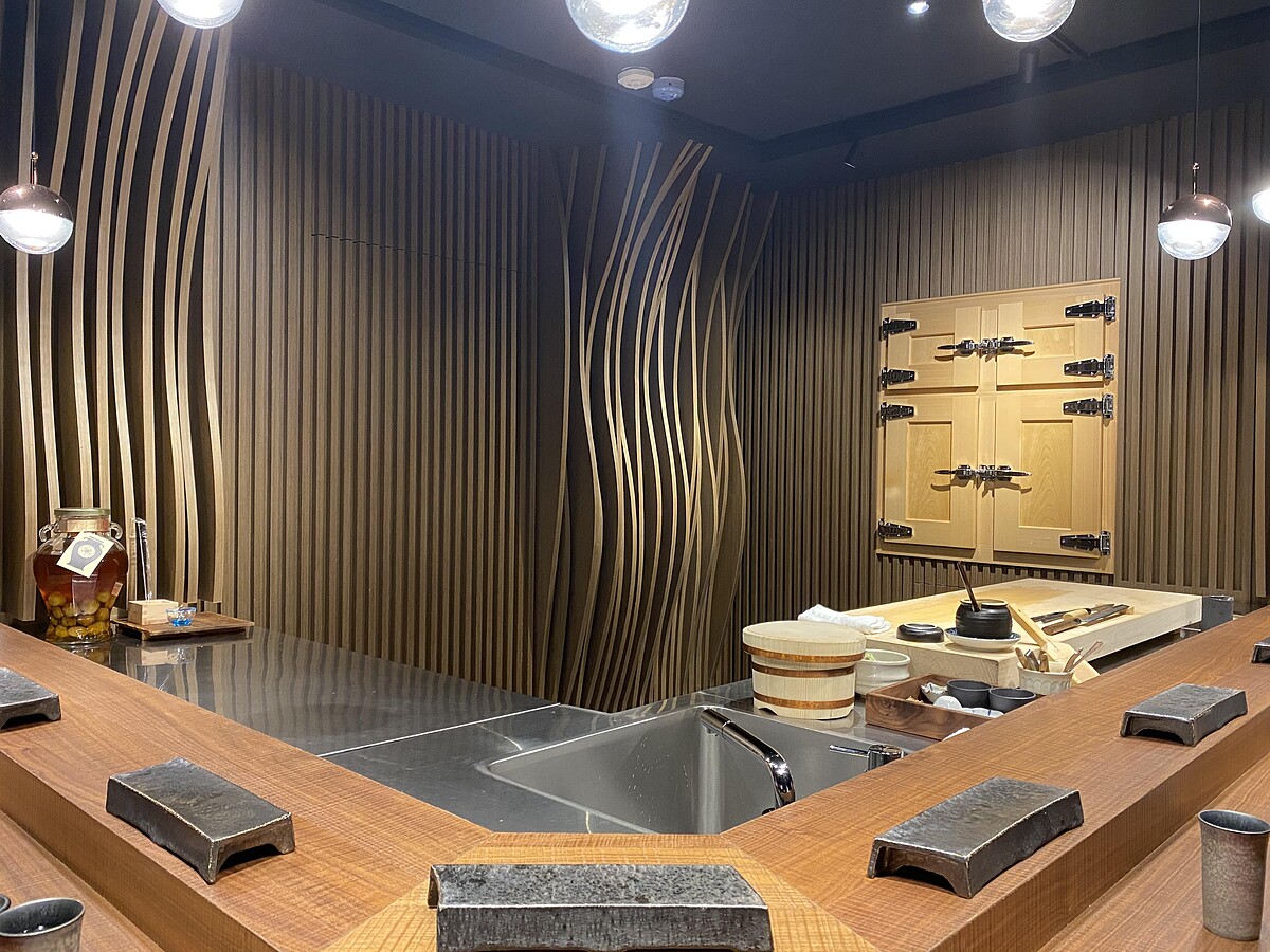 無菜單料理向來是 blu koi 的拿手好戲。來到餐廳外間的板前座席區,首先映入眼簾的便是耗資百萬特別從日本訂製的不插電「冰室」(Himuro),blu koi 的無菜單套餐中使用的所有上等魚鮮,全都會先經過冰室熟成的工序,而其時間長短與程度拿捏,完全仰賴對魚生處理經驗豐富的師傅來判斷。適度熟成過後,魚肉的風味和口感都將大幅提昇。