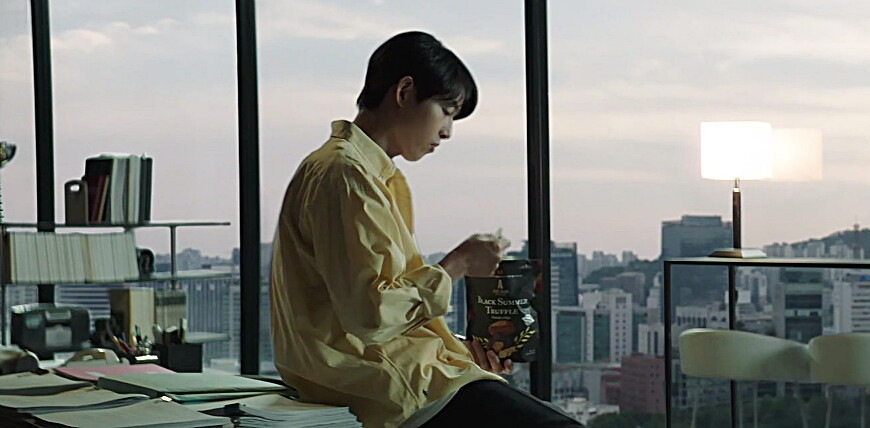 劇中陳導俊(宋仲基 飾)的搭檔吳世炫(朴赫權 飾)在討論投資項目與慶祝的同時開吃零食,而陳導俊吃過後也被洋芋片的魅力所征服,大讚好吃!
