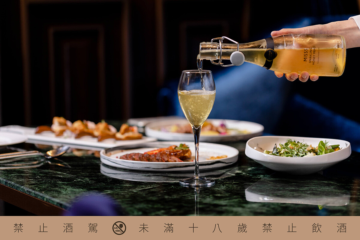 在研發期間嘗試加入各式蜂蜜,最終選用台灣本土的荔枝蜜、龍眼蜜,與香檳酵母共同發酵製成,以全量蜂蜜釀出氣泡酒,自然發酵而成的細緻氣泡感,而酒體釋放淡淡蜜香、輕盈純淨,透著淡金色的光暈,宛如薄霧透出晨光。