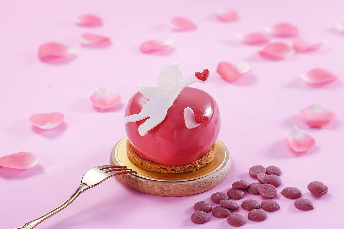 酸甜莓果加上特調優格奶餡、伯爵紅寶石慕斯與莓果蛋糕,外型上以愛神邱比特象徵愛情的美好。