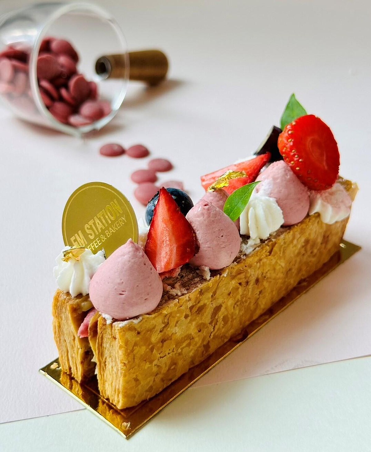 千層酥酥脆口感,配上芋泥及紅寶石巧克力混搭,一口咬下豐富味覺。