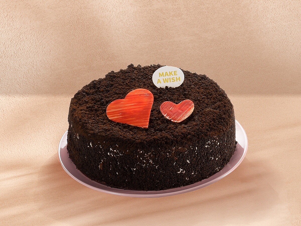 除了迷彩歡樂派外,還特別推出了情人節限定版蛋糕「北海道黑酷曲」,外觀神秘的黑蛋糕充滿濃厚OREO風味,融入北海道奶霜與特調卡士達,點綴淋上巧克力黑餅,與成雙成對的愛心巧克力,巧克力控千萬別錯過啦!
