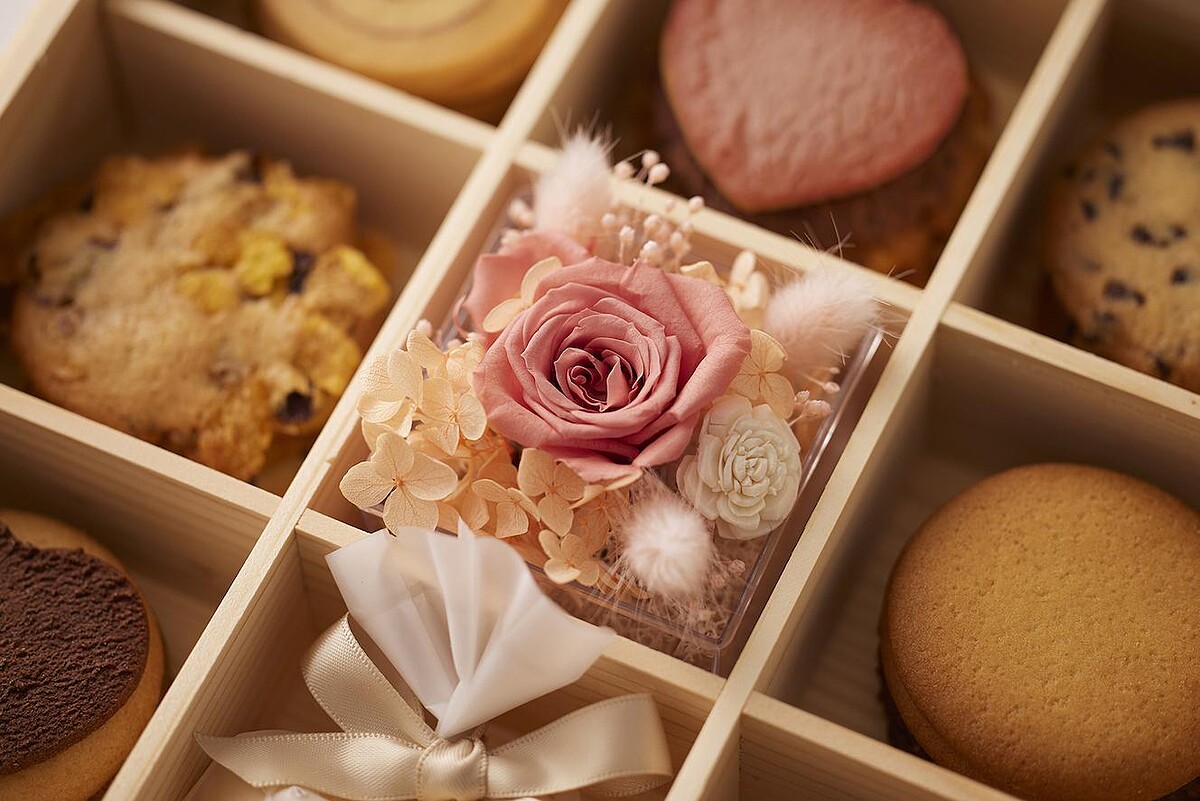 Love Letter 永生花禮手工餅乾禮盒極具巧思,中央選用夢幻粉色系永生玫瑰花禮,透過花語訴說愛情的美好,更象徵收禮的他佔據贈禮的你心中,最重要的專屬位置。