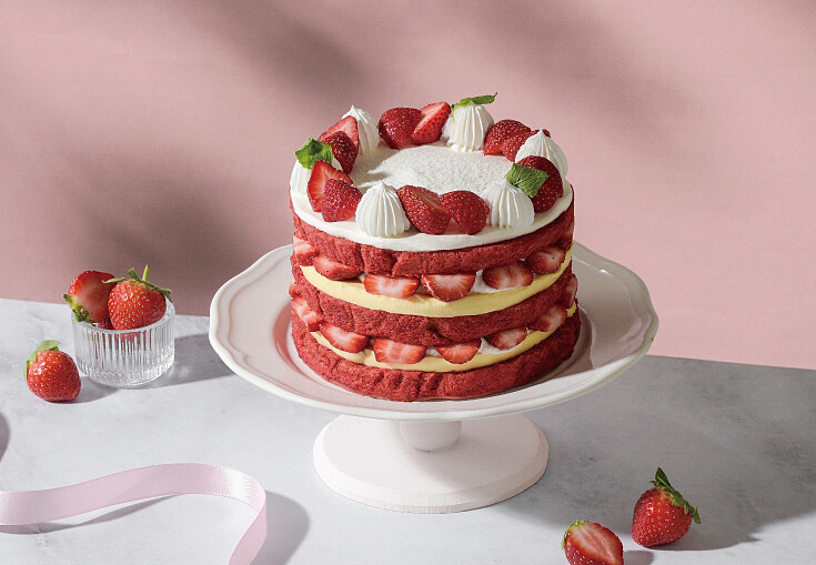 如果另一半是草莓控,那一定要試試這款「草莓甜心蛋糕」!以蓬鬆的香草蛋糕為基底,內餡則是由卡士達醬及綿密的布丁組合而成,最後抹上濕潤柔軟的草莓奶油,甜而不膩的多重口感,每一口都是幸福滋味!