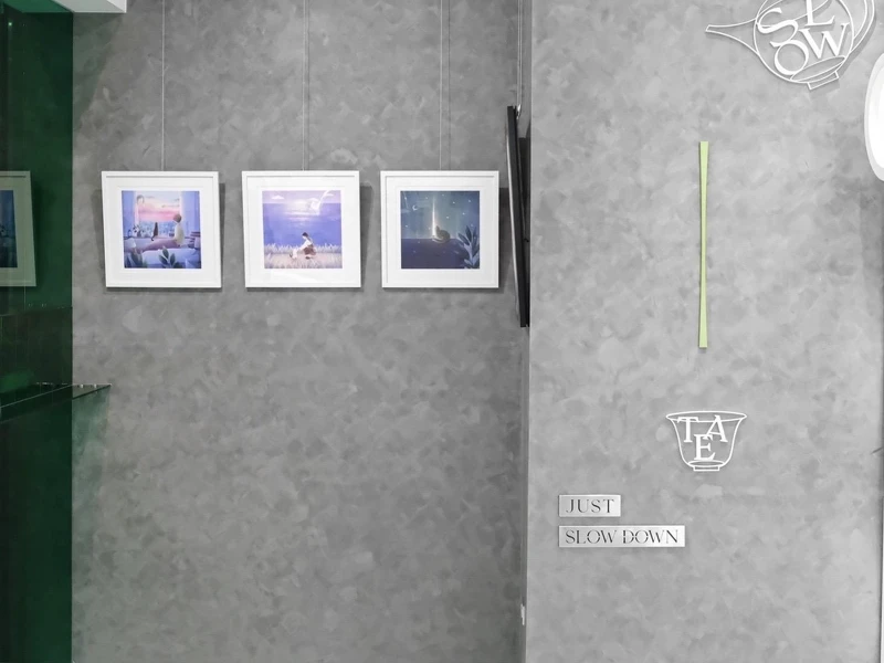《緩茶》店面坐落於美村路,有別於一般的手搖飲料店,這裡將手搖飲與藝廊的概念結合,打造出充滿質感的「茶飲藝廊」,讓大家買飲料的同時也能欣賞藝術的文化與美。