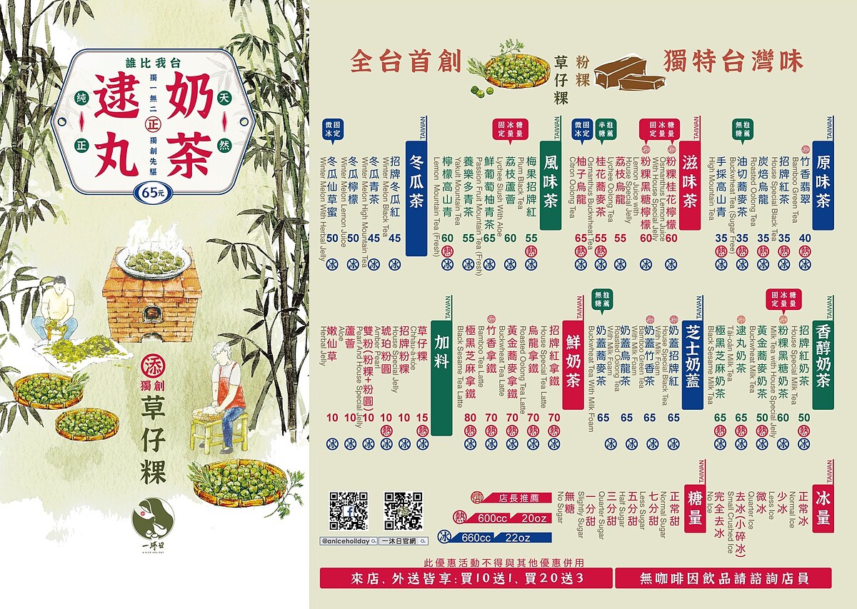 草仔粿是許多人記憶中的味道,從掃墓祭拜的傳統節慶食品演變成日常小點!而《一沐日》想做的從來不只是一杯飲料,而是台灣的味道,這杯「逮丸奶茶」就是台灣味的傳承。