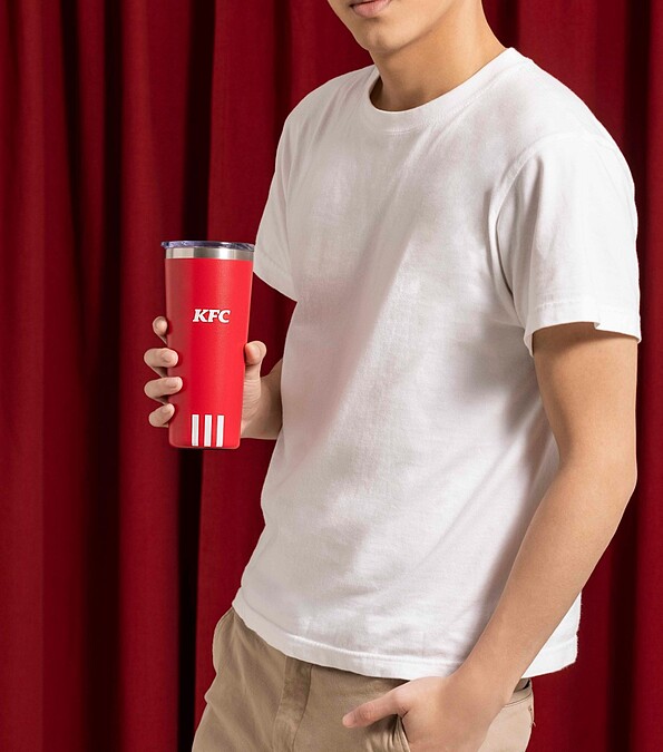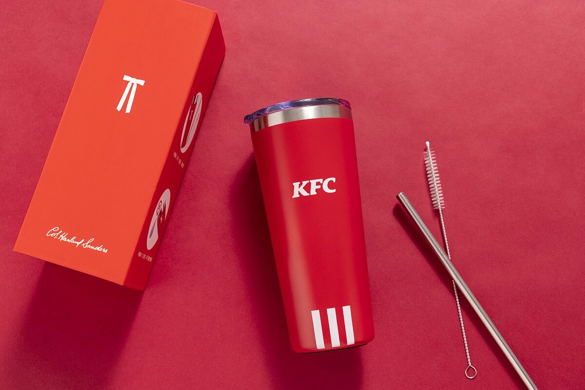 這款肯德基「肯愛地球杯」使用經典品牌紅,時尚質感瓶身搭配肯德基爺爺招牌領結圖樣,環保杯內層採用 304 不鏽鋼,杯身杯底都有防滑,溫度範圍可承受 -20℃ ~ 120℃,具保溫、保冰雙功能,隨杯還附贈不鏽鋼吸管和吸管刷,實用度更升級。