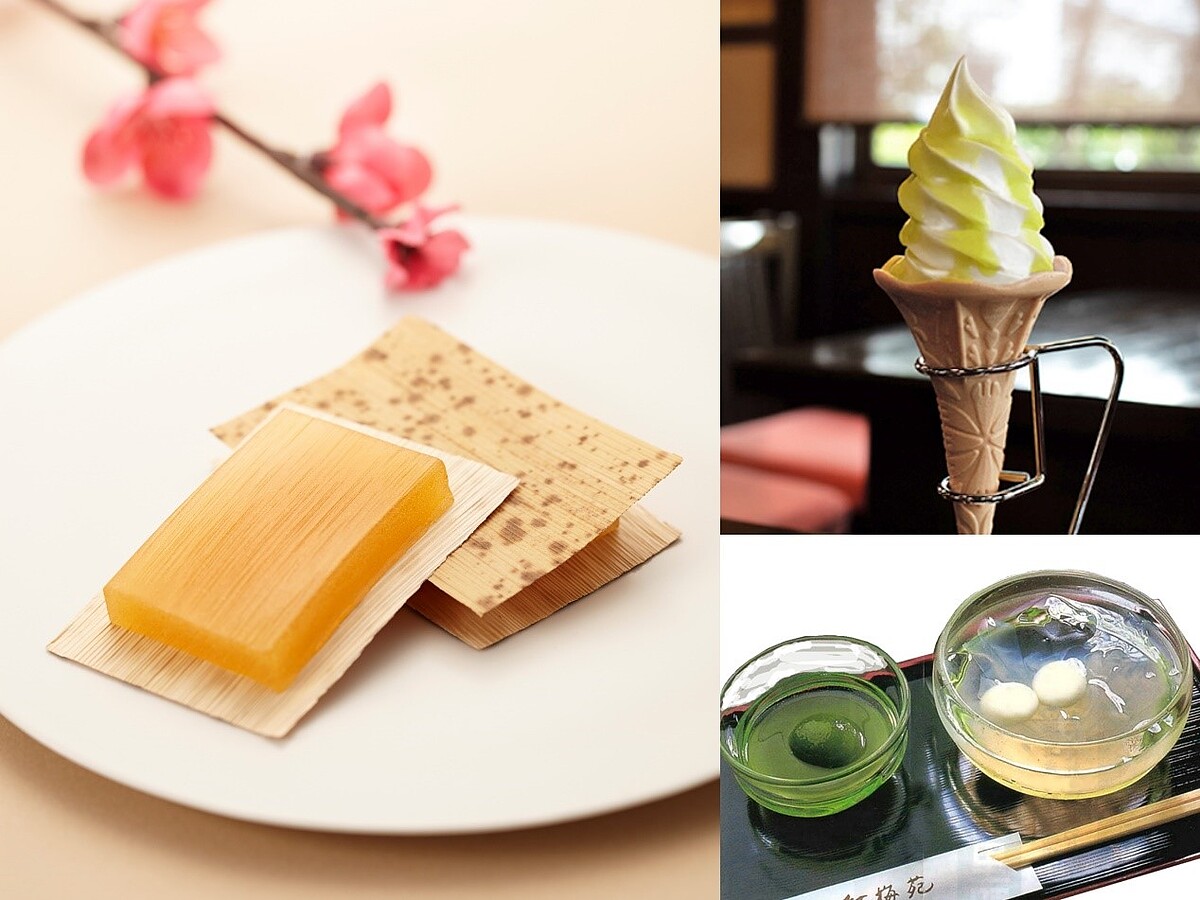 店內附設靜謐的喫茶空間,饕客可以在這裡享用到不同的梅子風味創意甜點,初訪可以試試採用紅梅苑特製梅酒所製成的「梅絹」,香氣十足,其口感如絹絲般滑順;「青梅冰淇淋」使用牛奶冰淇淋再淋上特製梅子糖漿的,風味濃郁但卻十分爽口;另外「青梅葛切」則是將滑順的葛粉條,佐以青梅糖漿一起品嚐,酸甜滋味讓人一吃就驚艷!