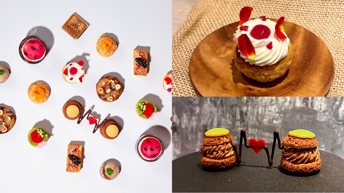 5款甜點從取名到外型都甜到心頭!加入白巧克力與覆盆子的「瑰荔情歌」、結合黑莓與巧克力脆片的「莓好戀情」,從視覺到味覺都洋溢著少女心;「榛心相愛」有著美式軟餅乾口感,以捏製小籠包的方式加入榛果餡,一口咬下便會流出鬆軟溫熱牛奶巧克力!「浪漫巴黎」更以巧克力心電圖連結,象徵著情侶之間的絕佳默契,令人會心一笑。3款鹹點則加入鴨肝、魚子醬,搭配苦甜巧克力交織出全新滋味。