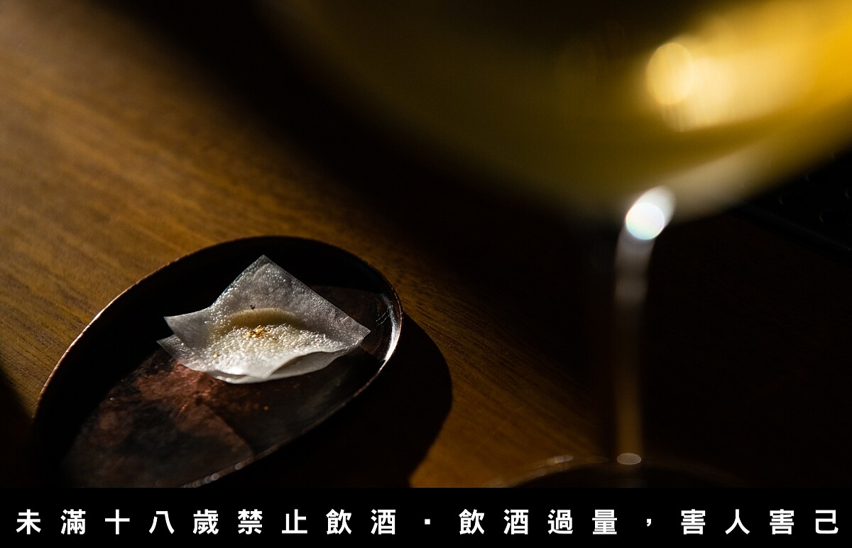 以威士忌為基底,並使用兩種不同的芝麻製作調酒。酒本身有白芝麻與金桔的搭配,濃郁的堅果風味因為柑橘明亮的香氣帶來新鮮的風味組合,尾韻還有黑胡椒的辛香。搭配上以黑芝麻、胡椒製作的戚風蛋糕,讓這獨特的風味組合以兩種不同方式呈現。