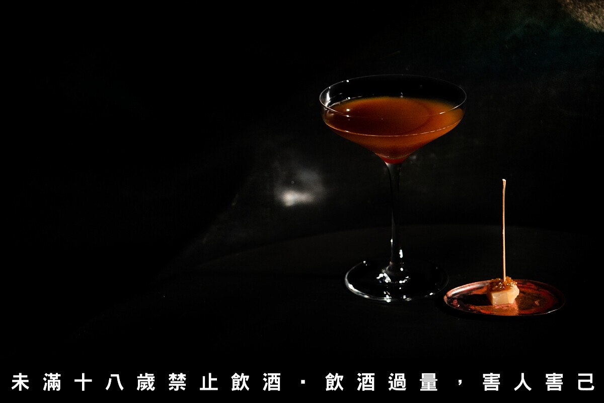 以經典調酒馬丁尼為結構,選用琴酒作為基底酒。將台灣魚鮮料理常見的漬物破布子融入琴酒中,讓獨特的發酵鹹香氣味與椰子花糖、麵包風味的雪莉酒調製,讓此杯調酒呈現鹹香的風味,就好似料理中的冷湯一般。再將破布子熬製成果醬,點綴在濃郁的白蘭地酒漬起司上方,成為一道難忘的搭酒小點。