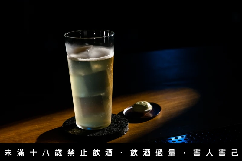以伏特加為基底,品飲前可聞到明顯的肉鬆與奶油香氣,會誤以為是杯味道厚重的調酒,而其實這是將焦化奶油油洗肉鬆,並加用自製小黃瓜氣泡水所製成的調酒,入口後有明顯小黃瓜清新的香氣,搭配綿密的氣泡,讓人感受到春夏的氣息。搭酒小食則是使用小黃瓜果肉與白糖、芥末製成慕斯。