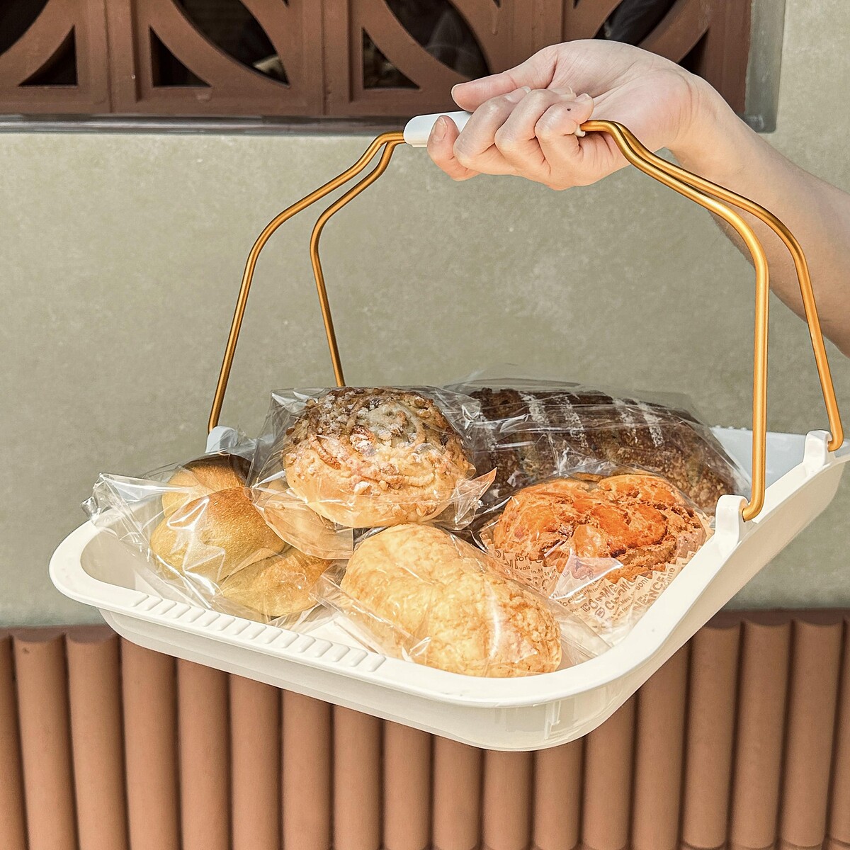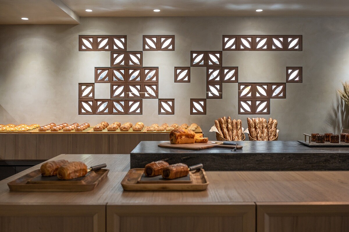 《陳耀訓麵包埠》新店面以全新的面貌呈現,帶著他對家鄉鹿港的印象設計了店內裝修,紅磚成為新店給人的第一印象。而外牆的紅磚上還藏有小巧思,巧妙的嵌入了吉祥圖案,例如古代的錢幣、蝴蝶等。透過紅磚的空心設計讓外部的光線照射進《陳耀訓麵包埠》中,在不同的時間中產生不一樣的光影變化,讓店內更具日常生活氣息,且每個角落都是端景,真的太美啦!