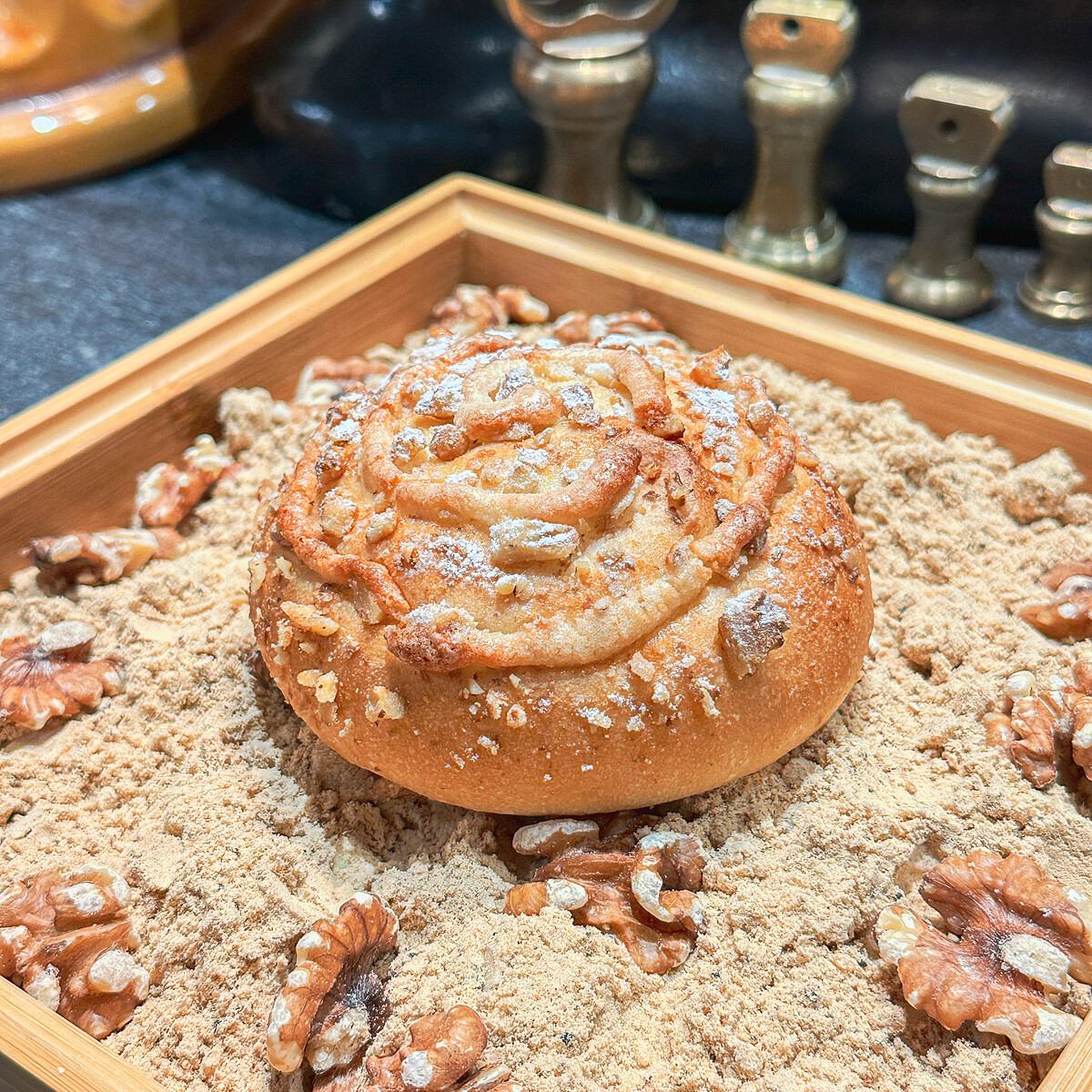 這次在搬遷至全新店面後,原本的麵茶維也納經過改良變成了「麵茶麵包」!陳耀訓師傅將麵茶奶油霜配方完全改變,將內餡改成更接近原始麵茶的濕潤口感,將麵茶、熱牛奶以及奶油混合成風味濃郁的內餡,麵包表面撒上了核桃碎、蛋白餅和糖粉,更增添了麵茶麵包的風味與口感層次。