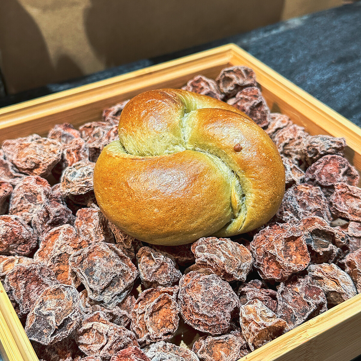 這款是小編的私心推薦,也是這次迎接春天推出的新品麵包!陳耀訓表示是從梅子綠茶獲得靈感,透過酸鹹的梅乾搭配微酸的奶油乳酪,與香片為主調的麵包,入口感受具有嚼勁的軟Q麵包,搭配濕潤的梅子乳酪,真的非常好吃!