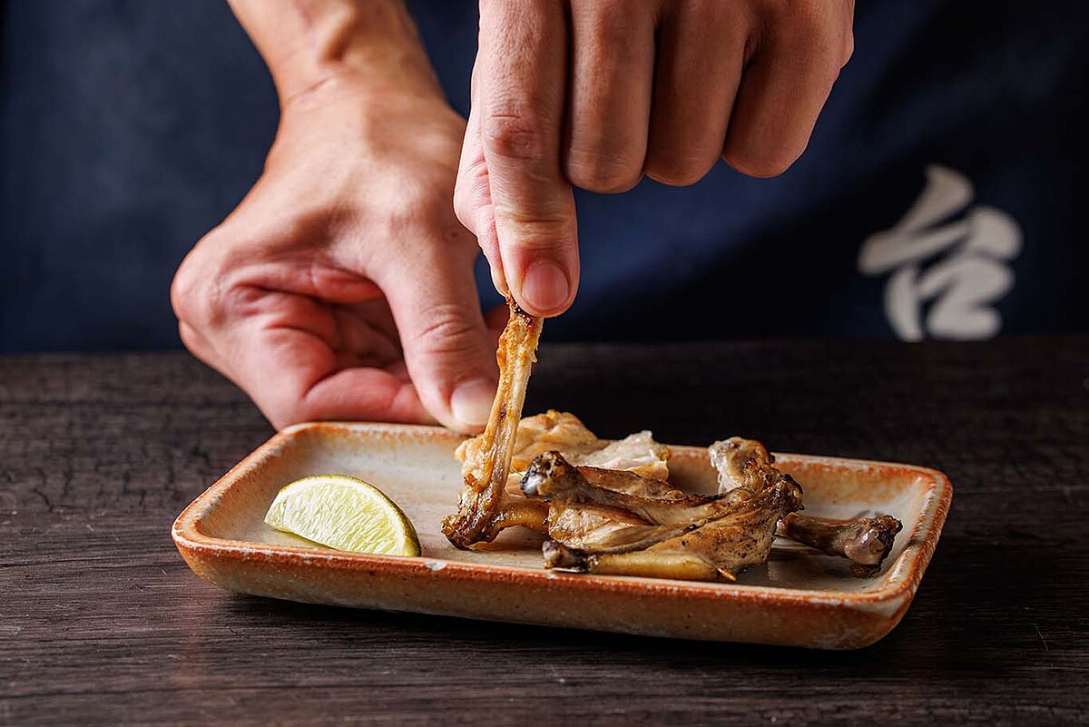 「手羽燒」深受女性饕客喜愛,採用獨特的手法分解雞翅中段,只需輕輕一扯即可將肉與骨頭分離,品嚐時只需大口享用,不必擔心吃到雞骨。入口感受雞肉中的膠質和黏度,肉汁清新而美味。