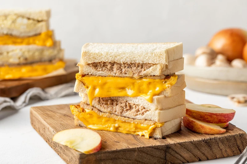 除了招牌的肉蛋吐司外,另一款人氣餐點就是「洋蔥鮪魚蛋吐司」啦!不同於一般早餐店加入美乃滋,店家更添加了獨家的配料「蘋果」,這不只讓整體口感更加豐富,且鮮甜的蘋果也讓吐司吃起來更加清爽不膩口。再搭配超厚蘑菇嫩蛋,每一口都讓人超滿足!