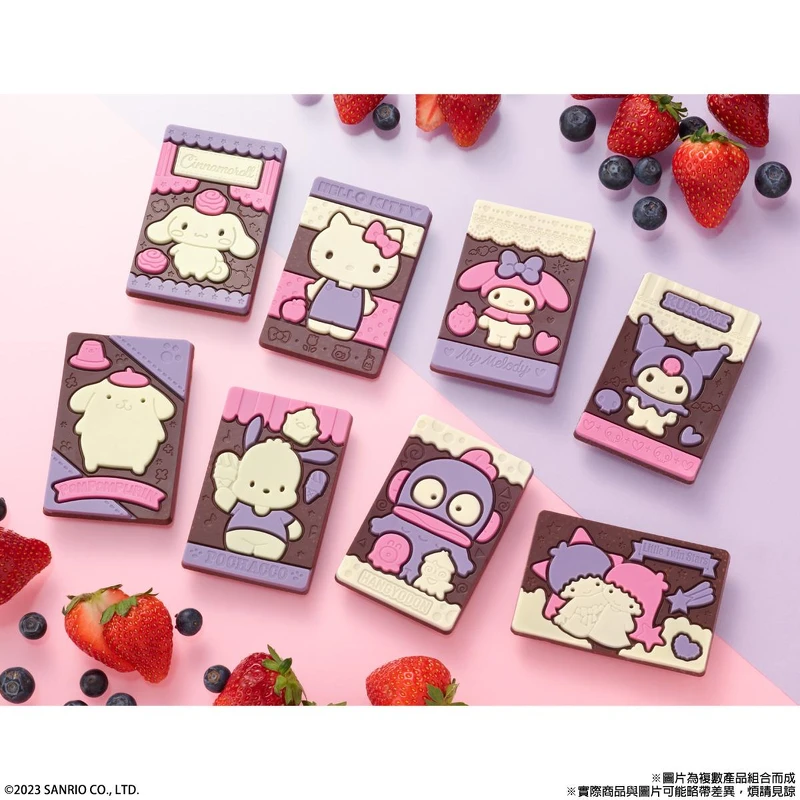 這款三麗鷗巧克力食完結合了草莓、白巧克力、夾心巧克力與藍莓,打造出豐富多層次的滋味。更精心打造每位角色的專屬巧克力背景,更將角色世界觀融入於繽紛巧克力背景當中。