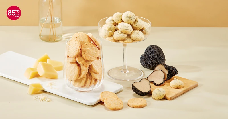 除了全新的豆奶系列飲品外,同步推出2款手工餅乾分別是「松露餅乾」與「帕瑪森餅乾」。松露餅乾以奶香味十足的餅乾搭配黑松露獨特香氣,口感酥脆美味;帕瑪森餅乾則採用長時間熟成的帕瑪森起司,搭配法國總統牌發酵奶油,鹹甜滋味超涮嘴,零食控必須嚐鮮一波啊!