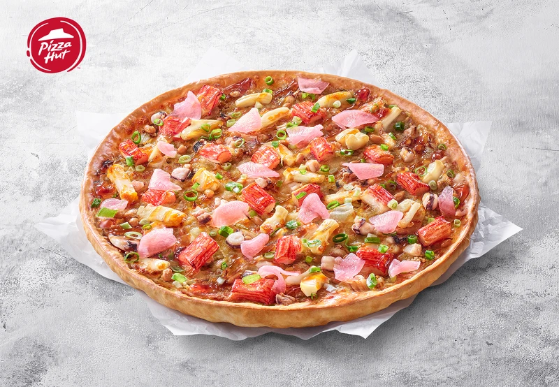 必勝客這次推出的「櫻滿開 納豆海鮮丼比薩」,由裡到外充滿了日本元素,將日式綠茶、納豆和日本壽司米巧妙地融合在一起,創作出獨特的「納豆烤茶飯」。納豆比薩再搭配經典的莫札瑞拉起司,納豆和起司呈現出雙倍拉絲的獨特口感,加上Q彈章魚、鮮甜花枝、蟹肉棒等海鮮食材,最後淋上特製的「山葵照燒醬」,並撒上酸甜爽脆的粉色櫻花蘿蔔片,而這款納豆披薩限時限量開賣,喜愛嚐鮮的人千萬別錯過啦!