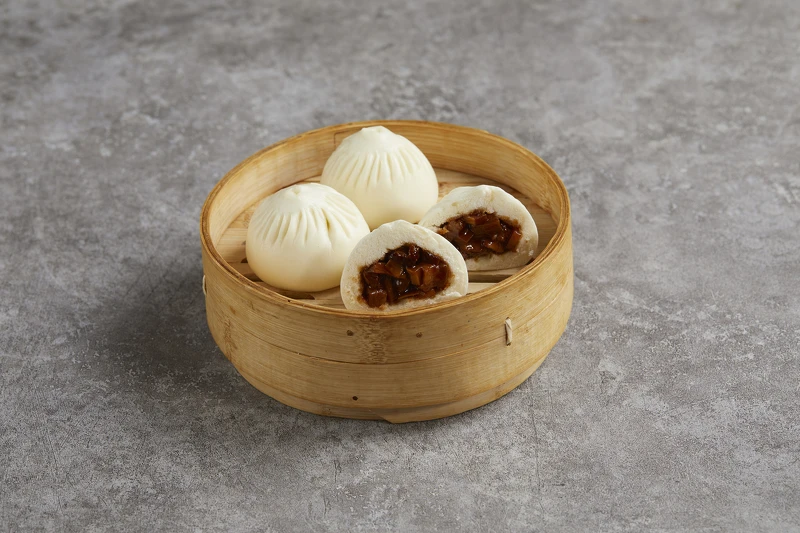 「外婆紅燒肉包」由研發主廚精心研製而成,主廚將五花肉和山筍切成小丁,再加入醬油、冰糖和料酒小火燒煮入味。這內餡難在收汁時不能以鍋鏟翻動,否則豬肉丁就會散開,口感就會受到影響。燒得軟嫩的肉丁和口感爽脆的筍丁,在口中交織出鮮明的口感,而甜美的醬汁則使麵皮更加滋潤,每一口都讓人回味無窮。