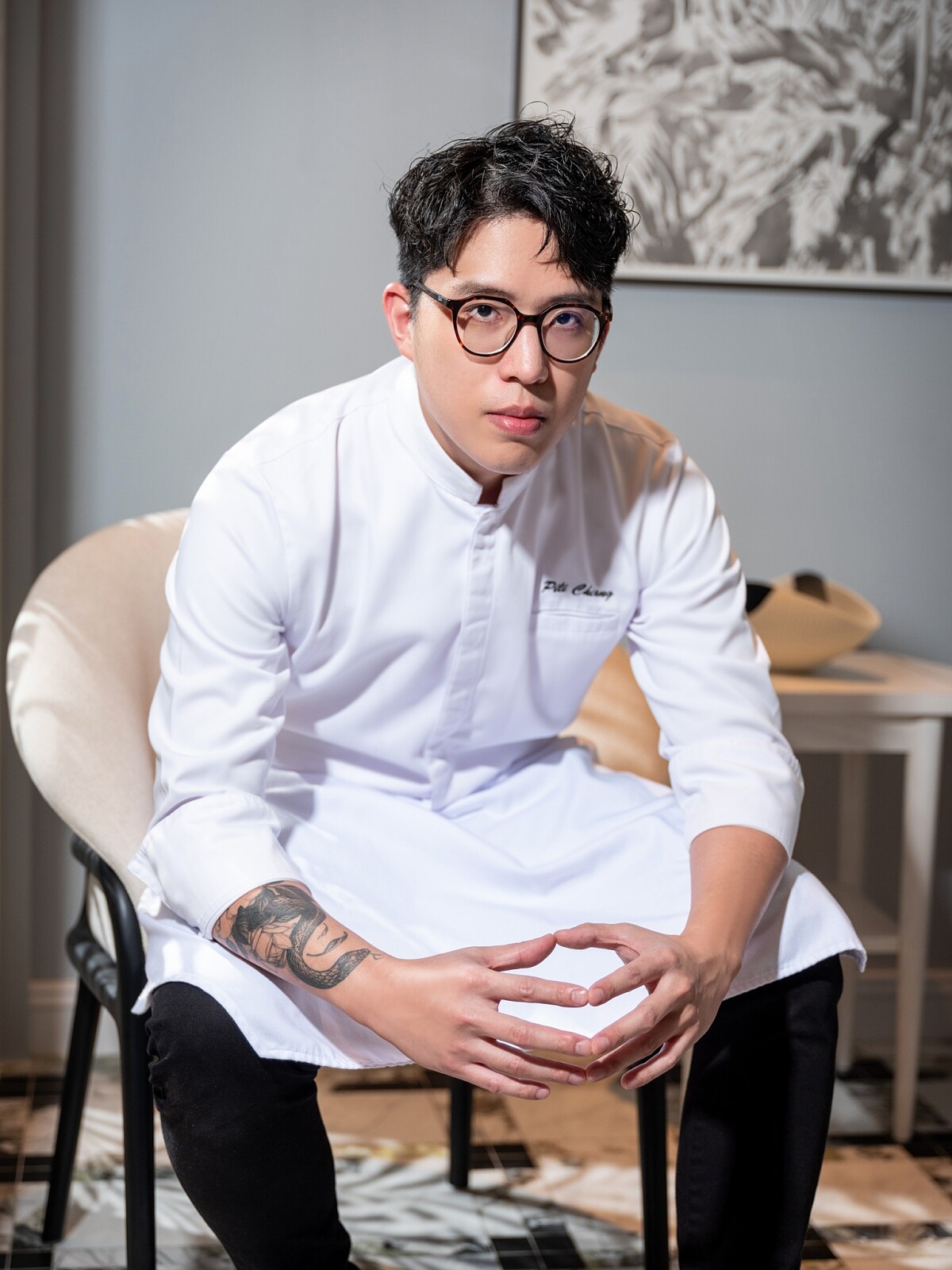 此次也不難發現炭炙技巧相繼出現,像是鱈魚白子、牛舌、鴨胸等餐盤中,Chef Pili 表示:「這三款油脂豐富的食材,透過炙烤,炭烤等方式展現油脂反應,讓食材在香氣上多一個層次…其中細微的差別,在於牛舌跟白子 只需瞬間的炙燒給它表面帶來香氣就好;鴨胸就需要相對長一點時間去烤出鴨皮的油脂。」