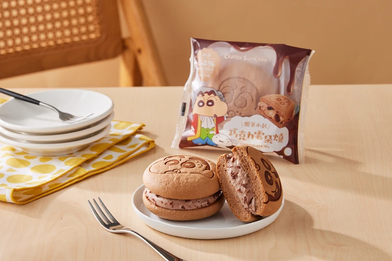 蠟筆小新巧克力雲朵燒由歐風造型的小新代表,內餡加入64%比利時巧克力,濃郁的巧克力風味太療癒啦!
