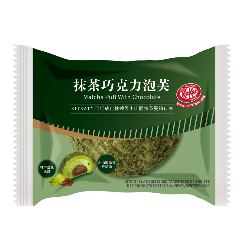 以KitKat®可可威化抹醬搭配特調抹茶的卡士達雙餡,一口咬下感受香甜滑順、爆餡滋味,每口都讓人超滿足!