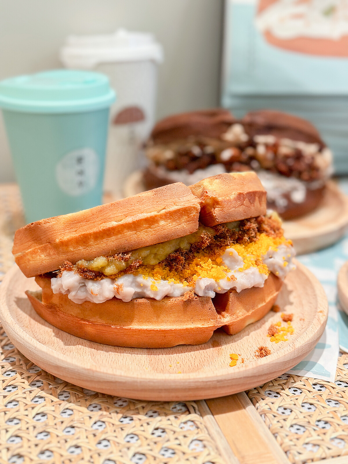 白狐院華夫餅菜單推薦-厚金沙芋泥華夫餅(台灣限定)
