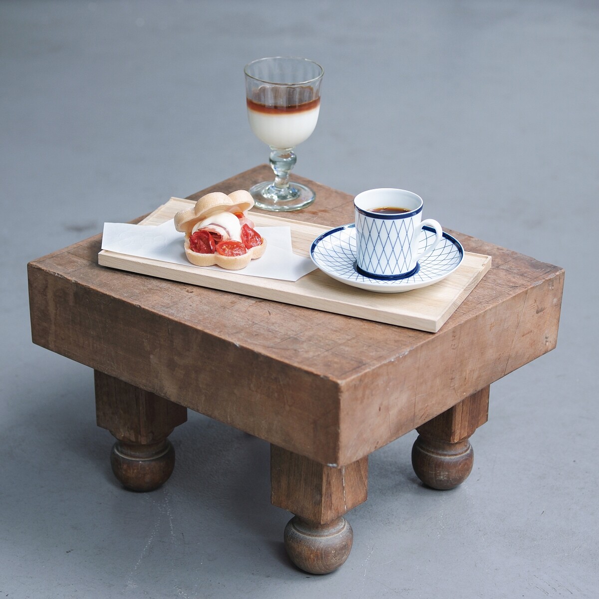 此次重本書店咖啡 Fine Dining 套餐總共有三道咖啡與餐點的搭配,餐點設計者為ORIN 工作室于采玄,畢業於澳洲墨爾本 Academia International 餐飲學院的她接下任務,挑戰咖啡與鹹食一起食用的可能性,並從風味的撞擊與平衡著手,幾番嘗試,才找到這些與咖啡的完美組合。