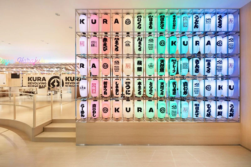 店內設計結合了日本傳統美學與現代設計的元素,打破了迴轉壽司一貫的形象。店內的巨大白燈籠和浮世繪裝飾,呈現了經典的日本文化氛圍。